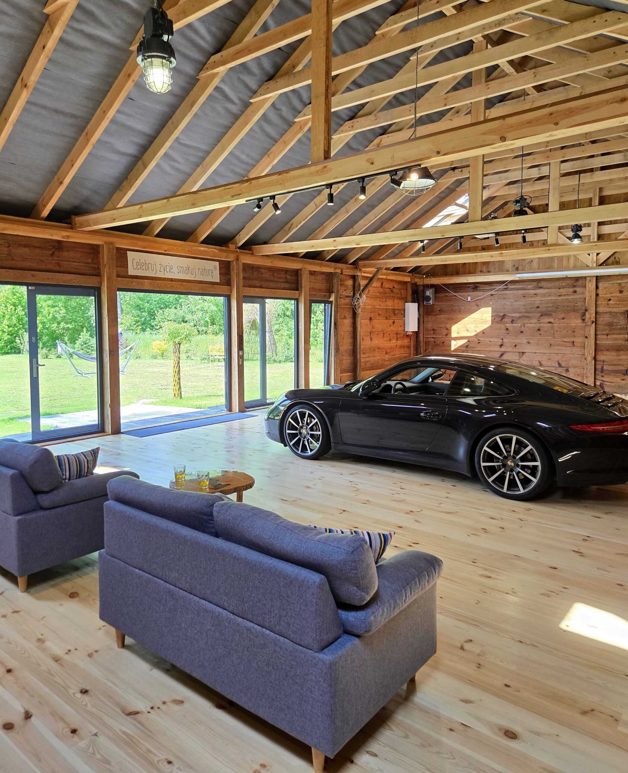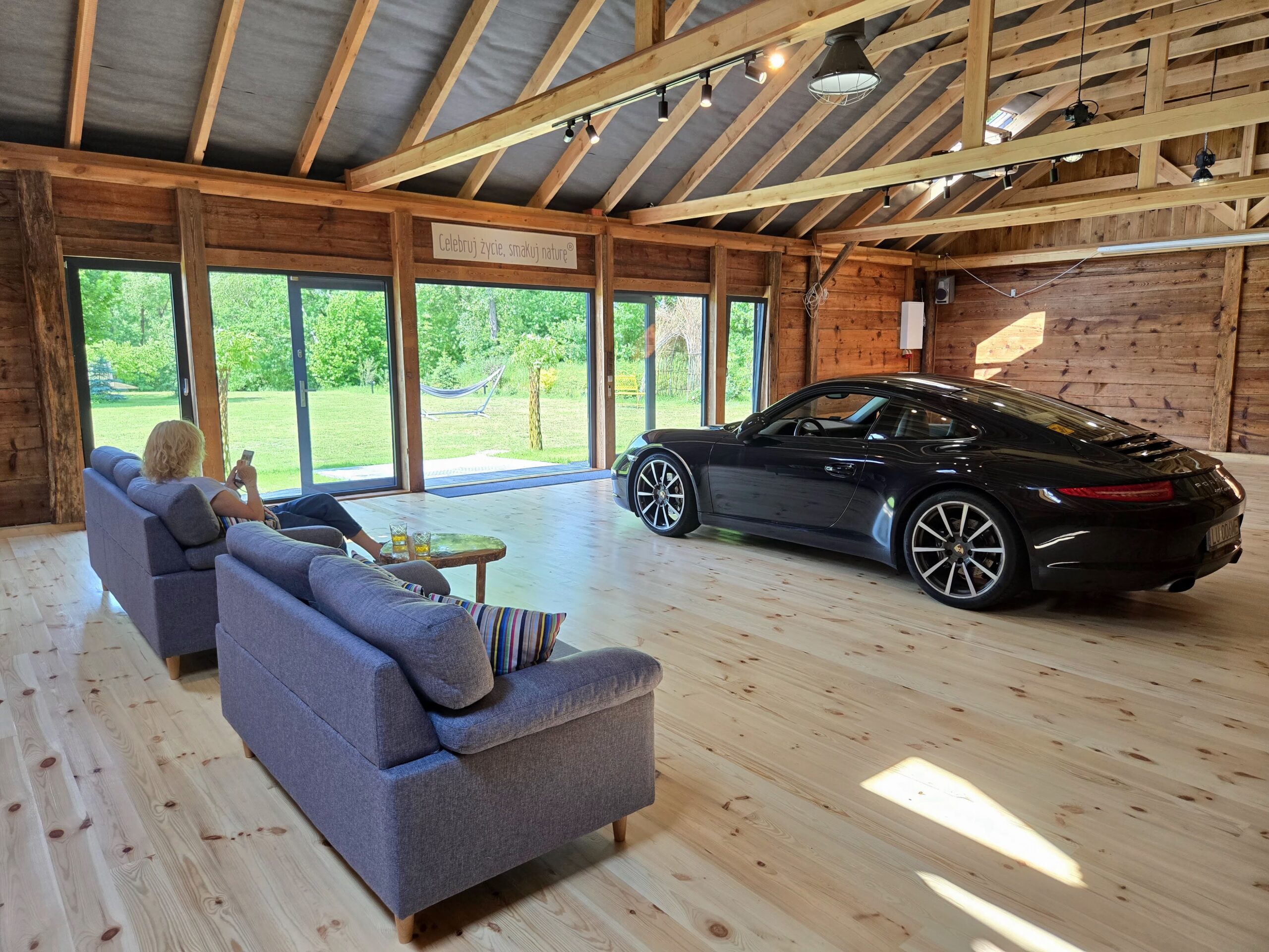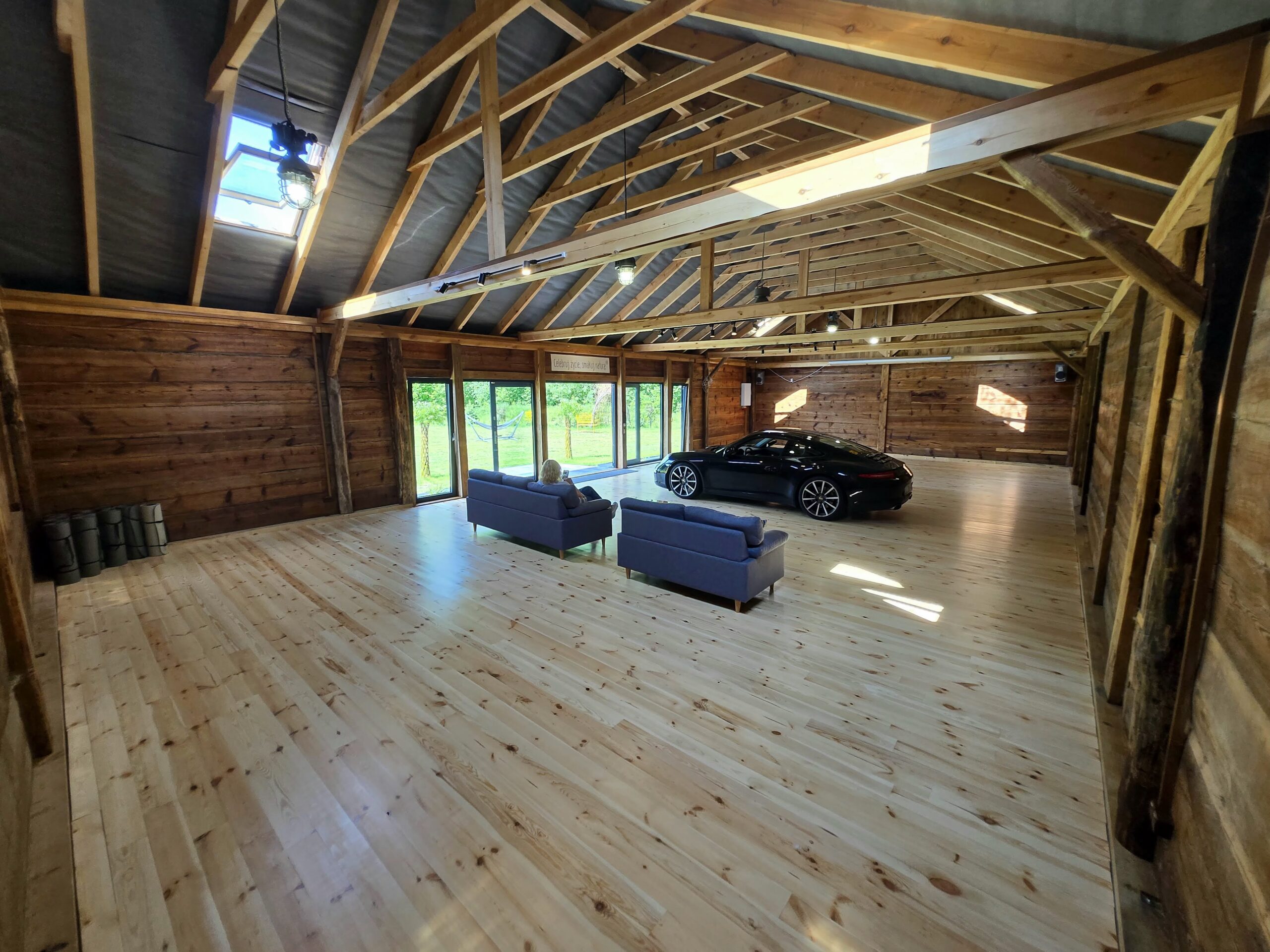 Stodoła została zaporojektowana w sposób, który umożliwia wjazd samochodu do środka, przez co jest idealnym miejscem na np. prezentacje nowych modeli lub spotkania miłośników motoryzacji.