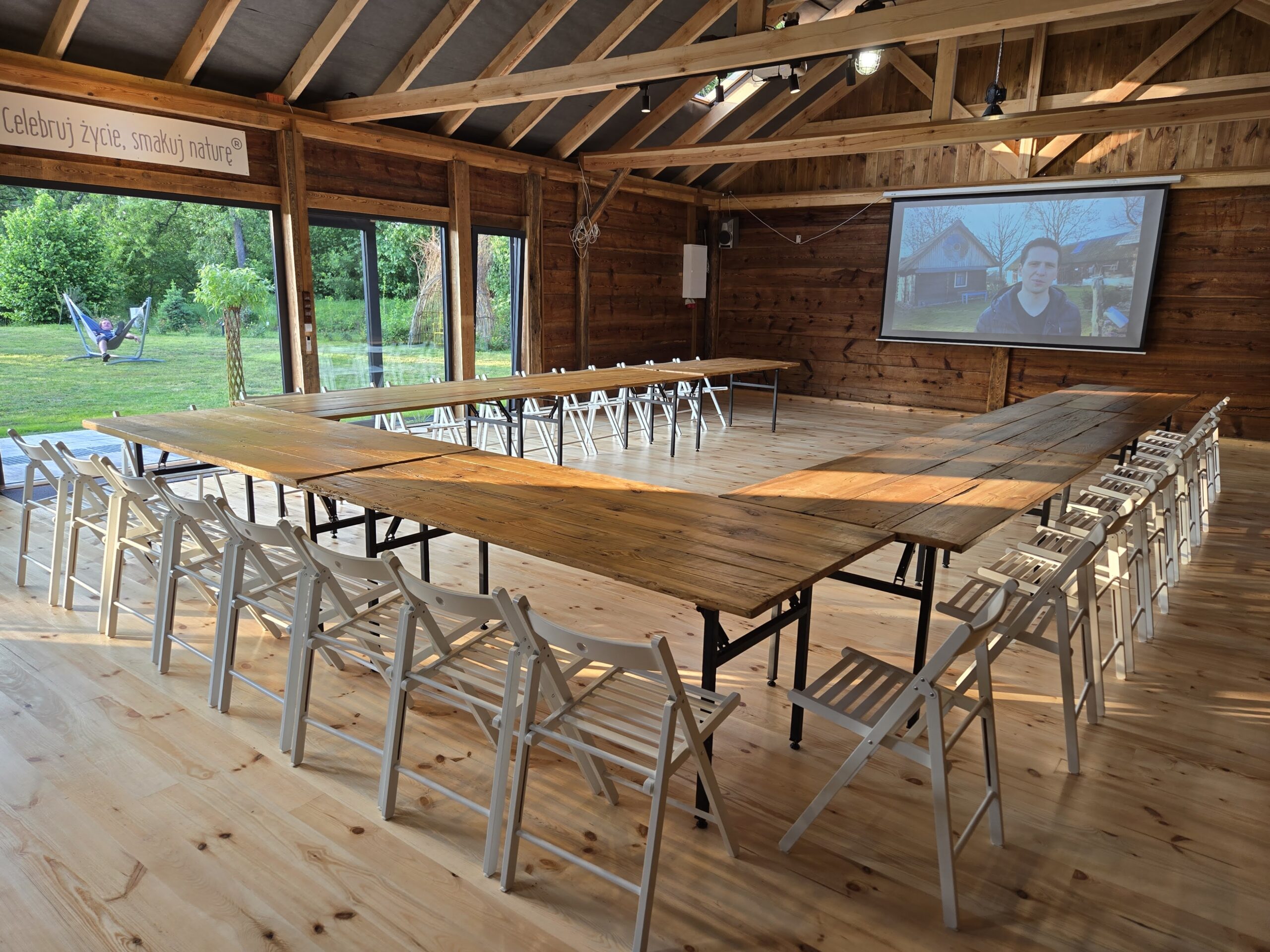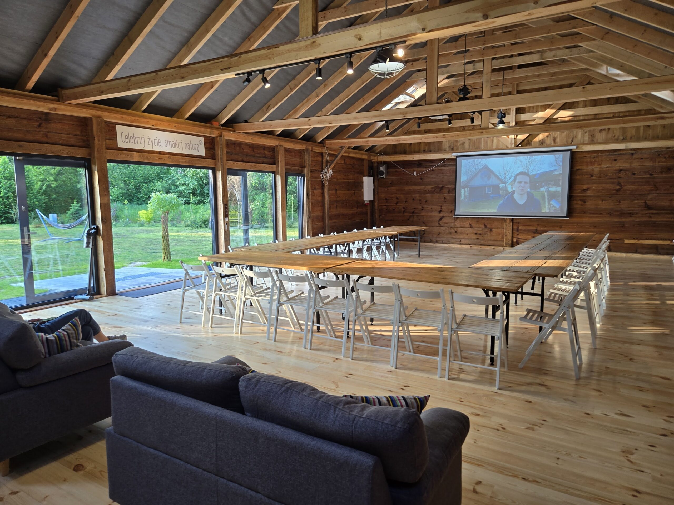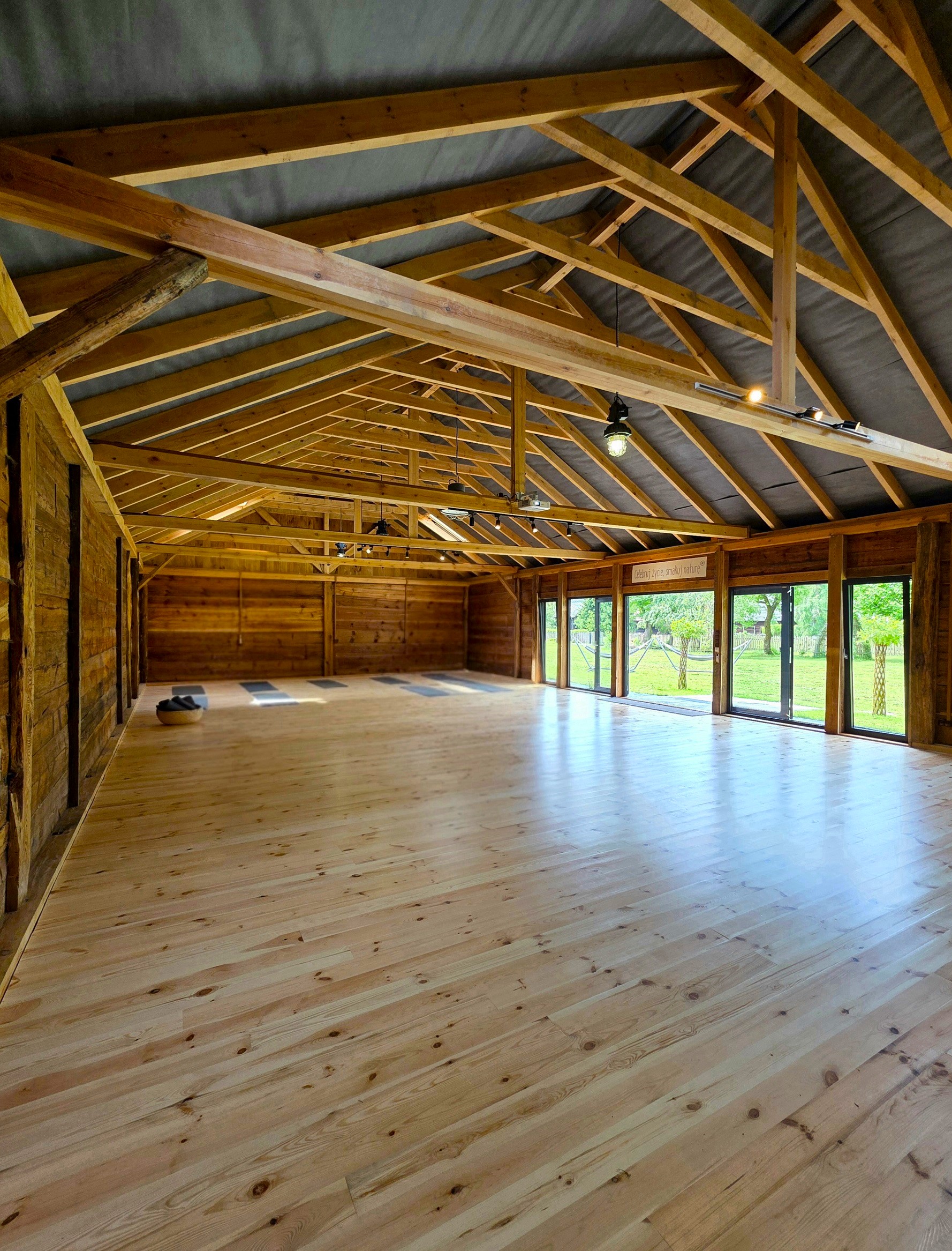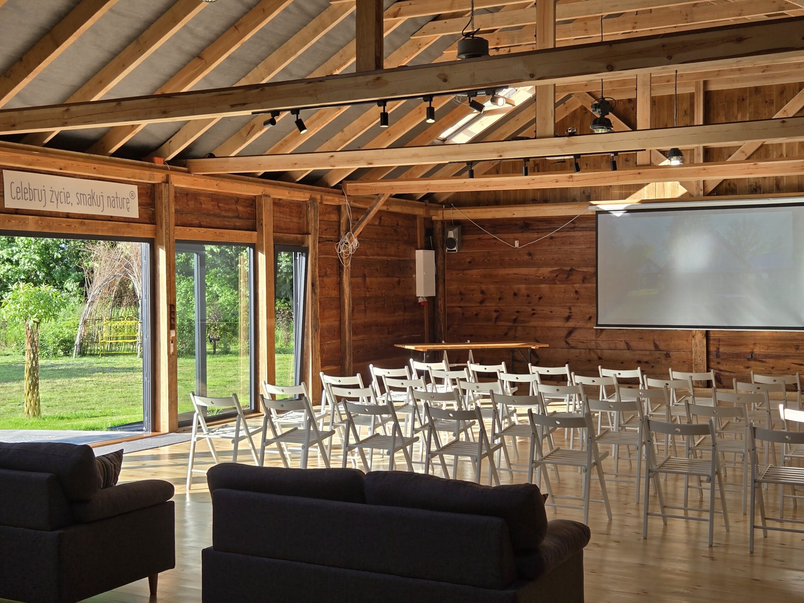 Przygotowaliśmy dla Was wyjątkowe miejsce do prowadzenia zajęć i warsztatów. Jest to stara stodoła z bali drewnianych i z podłogą z desek o powierzchni 150 m2. Jest ona położona w sąsiedztwie Dużej Stodoły. Przez duże przeszklenia widać zieleń i ogród. Stodoła jest klimatyzowana.